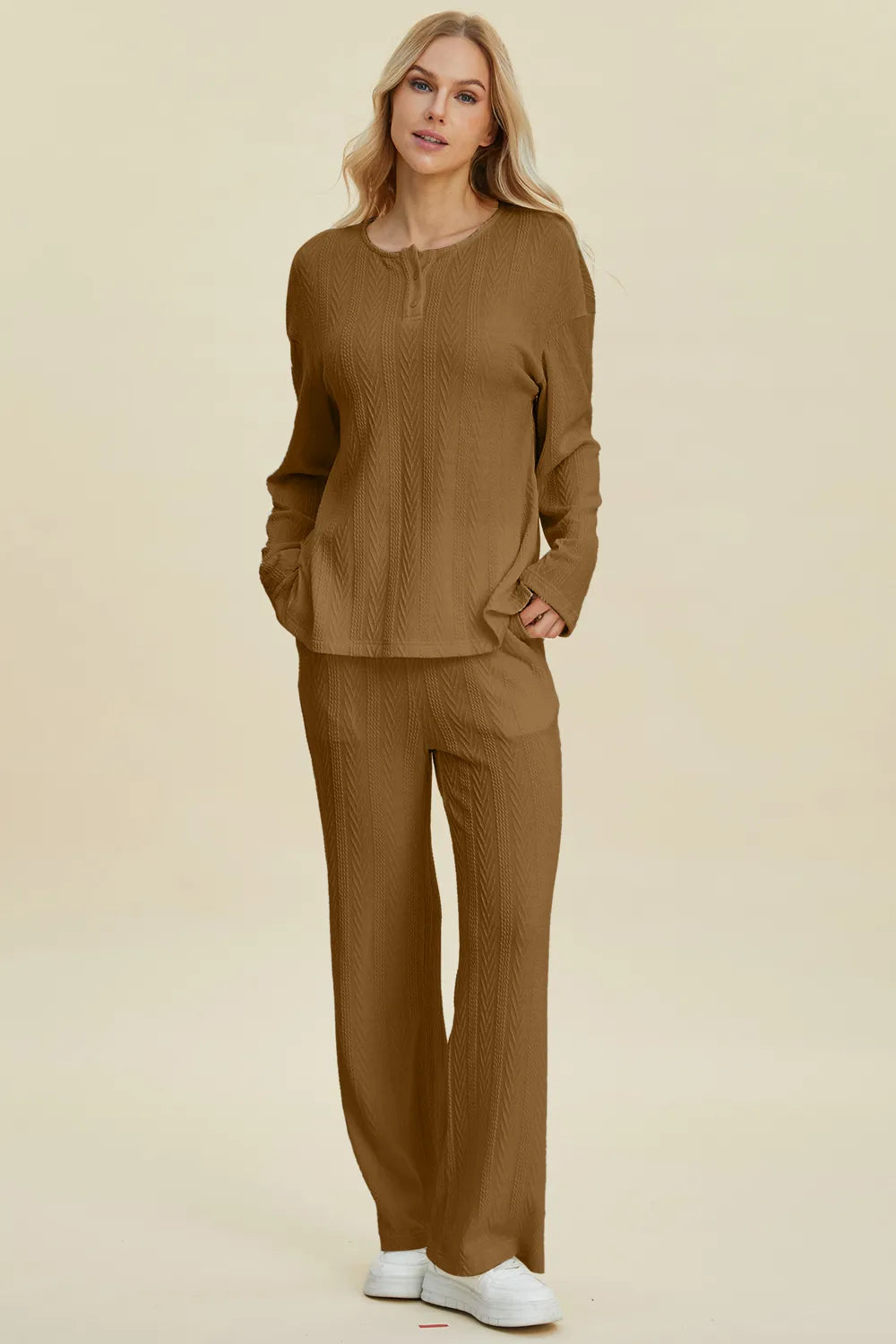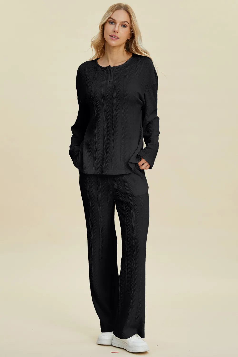 Double Take Full Size Cable-Knit Long Sleeve Top and Pants Set